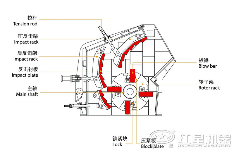物(wu)料(liao)是利用高速旋(xuan)轉的(de)(de)板錘(chui)錘(chui)擊(ji)(ji)進(jin)入破(po)碎區域(yu),并受到(dao)板錘(chui)的(de)(de)高速沖擊(ji)(ji)而破(po)碎,物(wu)料(liao)在設(she)定的(de)(de)流道內沿第(di)一、第(di)二反擊(ji)(ji)板經一定時間(jian)一定長度的(de)(de)反復沖擊(ji)(ji)路線使物(wu)料(liao)破(po)碎。