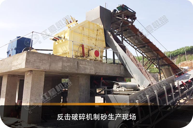 反擊破碎機生產石灰(hui)石機制砂現場(chang)