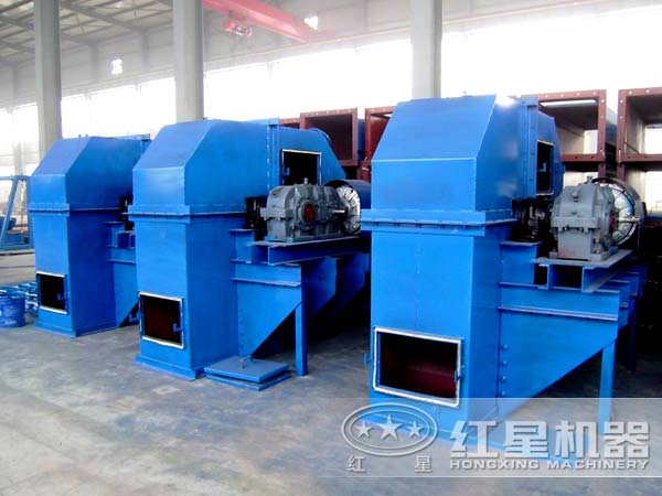 料(liao)斗(dou)(dou)把物料(liao)從下(xia)面(mian)的(de)儲藏中舀起,隨著(zhu)輸(shu)送(song)帶(dai)(dai)或(huo)鏈(lian)提(ti)升到頂部,繞過(guo)頂輪后向(xiang)下(xia)翻轉, 斗(dou)(dou)式(shi)提(ti)升機(ji)將物料(liao)傾入接受槽內。帶(dai)(dai)傳(chuan)(chuan)動(dong)(dong)(dong)的(de)斗(dou)(dou)式(shi)提(ti)升機(ji)的(de)傳(chuan)(chuan)動(dong)(dong)(dong)帶(dai)(dai)一(yi)(yi)般(ban)采用橡膠帶(dai)(dai),裝在下(xia)或(huo)上(shang)面(mian)的(de)傳(chuan)(chuan)動(dong)(dong)(dong)滾(gun)筒(tong)和上(shang)下(xia)面(mian)的(de)改向(xiang)滾(gun)筒(tong)上(shang)。鏈(lian)傳(chuan)(chuan)動(dong)(dong)(dong)的(de)斗(dou)(dou)式(shi)提(ti)升機(ji)一(yi)(yi)般(ban)裝有(you)兩條平(ping)行的(de)傳(chuan)(chuan)動(dong)(dong)(dong)鏈(lian),上(shang)或(huo)下(xia)面(mian)有(you)一(yi)(yi)對傳(chuan)(chuan)動(dong)(dong)(dong)鏈(lian)輪,下(xia)或(huo)上(shang)面(mian)是一(yi)(yi)對改向(xiang)鏈(lian)輪。斗(dou)(dou)式(shi)提(ti)升機(ji)一(yi)(yi)般(ban)都裝有(you)機(ji)殼,以防(fang)止斗(dou)(dou)式(shi)提(ti)升機(ji)中粉塵飛揚。