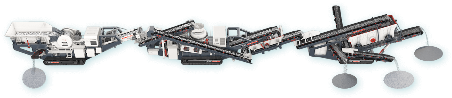 由挖掘機送至給料(liao)(liao)機,細小廢料(liao)(liao)經振動(dong)篩(shai)預篩(shai)分后排出,大料(liao)(liao)進移動(dong)顎式破(po)碎機破(po)碎。